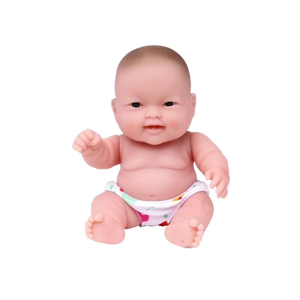 Lots-to-love 10″ baby doll is plain-bodied soft vinyl and fully-jointed.