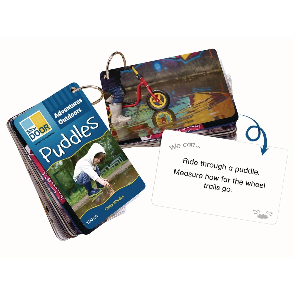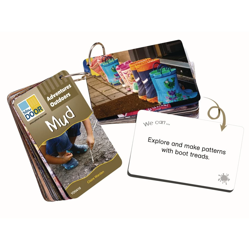 The 60 appealing activity cards offer inspiring ideas that build on the fascination of children. Each card shows an engaging photo on one side with clear activity ideas on the reverse. Printed on durable, wipe-able plastic, the cards are practical, portable and designed to help share the possibilities of playing outside in nature in an accessible way. Perfect to stimulate curiosity and engage children in rich learning opportunities outside. Set includes: Mud, Puddles and Wind activity cards.