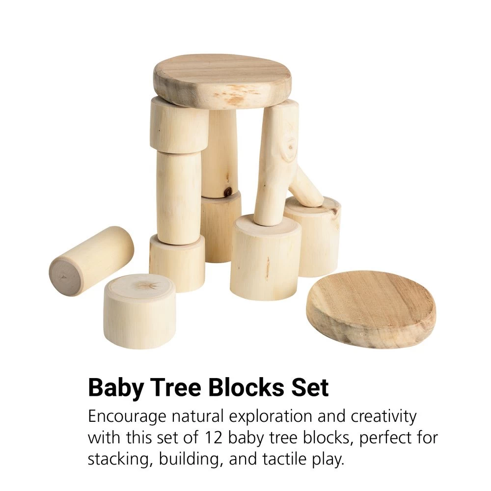 This set of 12 specially processed, barkless blocks is perfect for very young children! With smooth edges, these hefty blocks are great for stacking, building, and imaginative play!