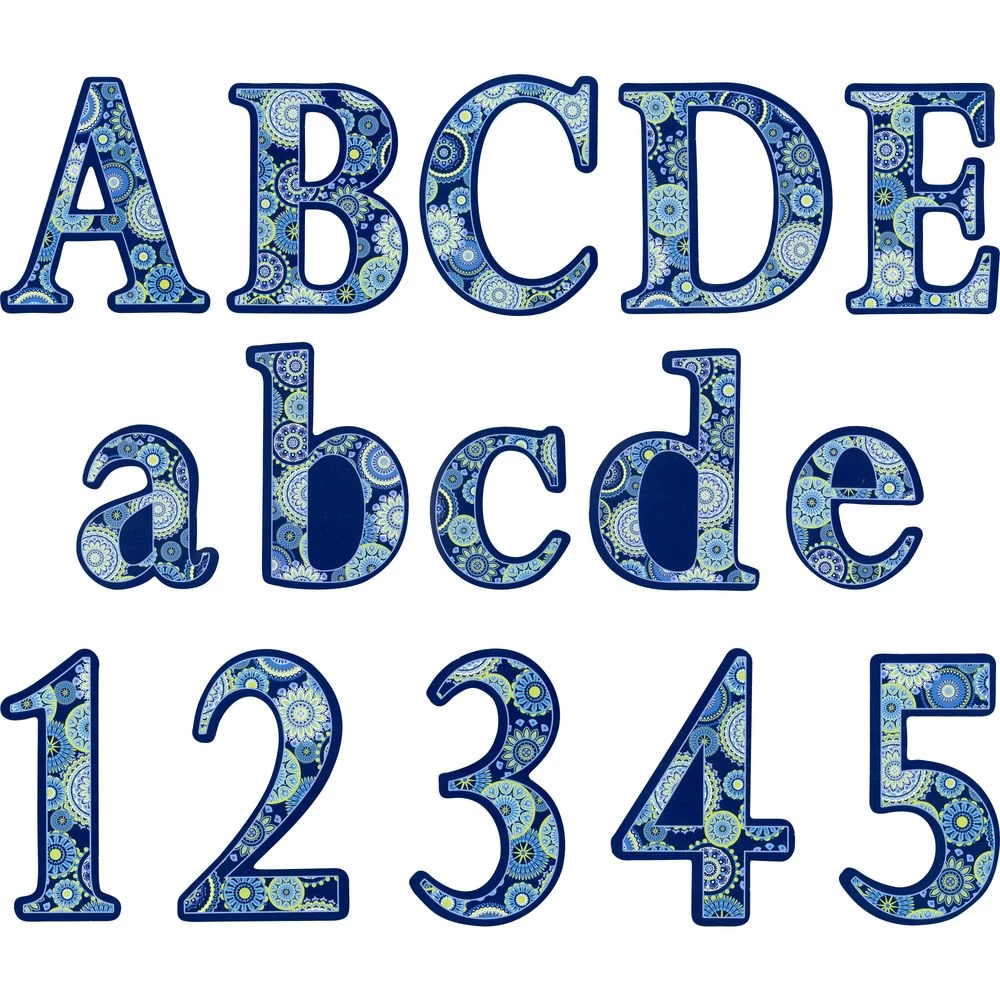Your classroom decor will be both stylish and harmonious with these accent pieces. The set includes capital and lowercase letters and numbers in a tranquil mandala pattern that coordinates beautifully with other Blue Harmony items.