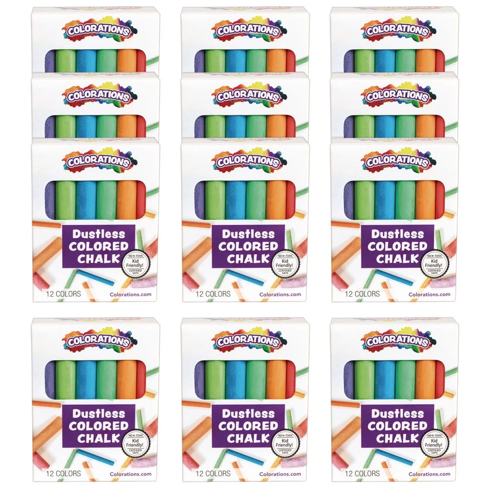 - CONTENTS: 12 Boxes of 12 dustless colored chalk (each). 3 inches in length x 3/8 inches diameter.