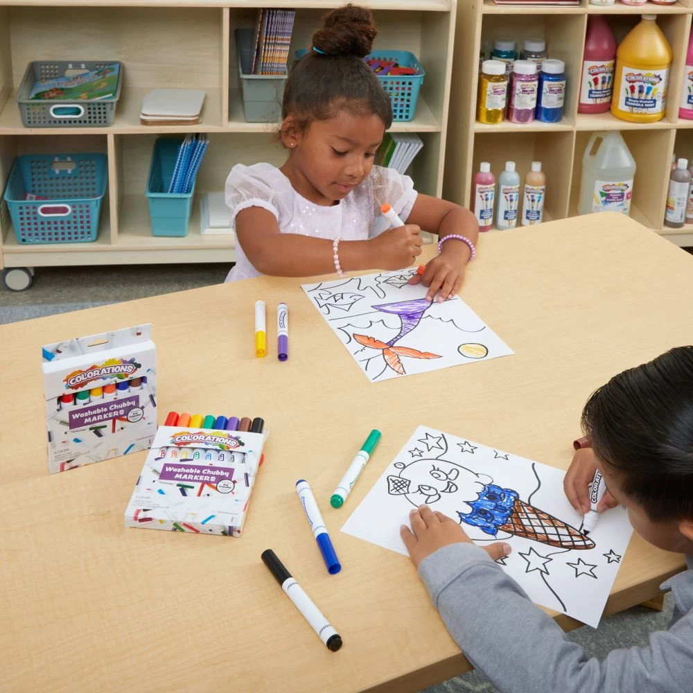 - VERSATILE: Chubby markers are easy to hold. Conical tip for writing, drawing and coloring. Tips make fine lines or use to fill in large coloring spaces. Packaging may vary from picture shown.