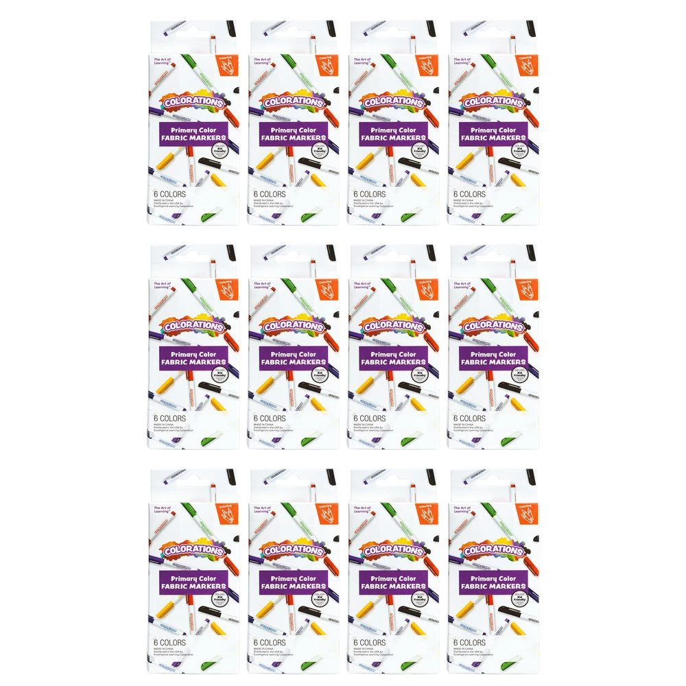 WHAT YOU GET: 12 sets of 6 fabric markers, size is 5 3/8 inches L x 3/8 inch diameter, each; nib is 1/8 inch diameter. Each marker holds 3 grams of non-washable, permanent ink.