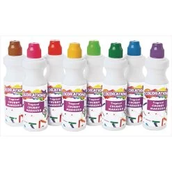 - WASHABLE: Markers do not dry out even when lid is left off. Completely washable ink for easy clean up! Non-toxic. 75 ml ink, barrel measures 5 inches Long and 1-1/4 inches in diameter. Each marker has 2.5 ounces of ink for lots of coloring!