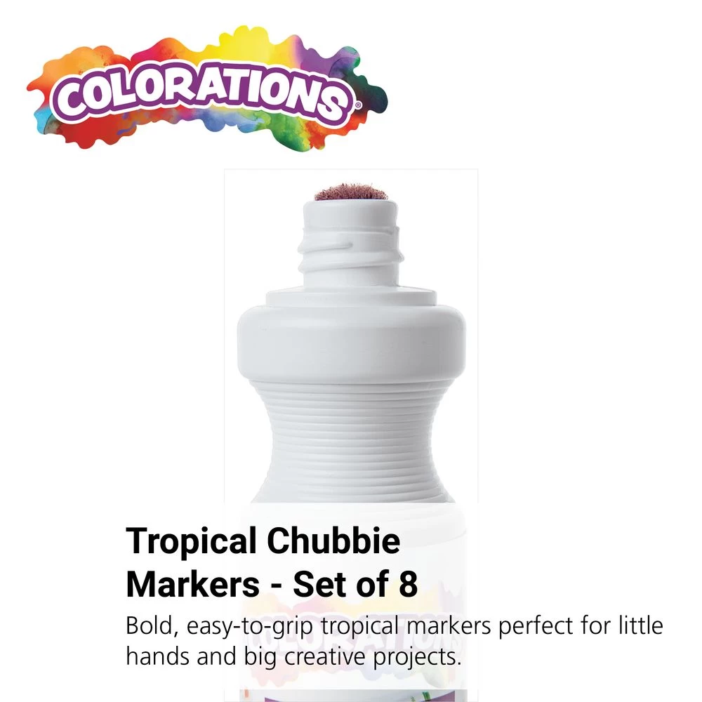 - BOLD COLORS AND EASY TO USE: Set of 8 Tropical Colors; bark brown, lime, magenta, ocean blue, teal, tiger orange, violet and yellow-orange. Mini sized with chubby grips.Easy to use and control. Perfect for little hands
