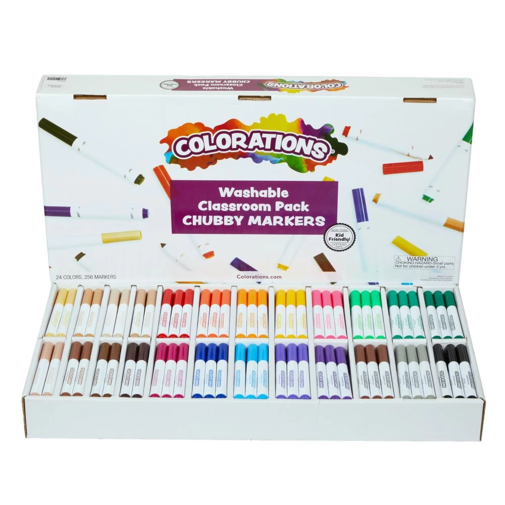 256 classic and skin-toned colored markers. You get 24 different color markers, great for diversity projects and crafts. A great tool for students to show their creative side while improving motor skills. All Colorations® products are certified ASTM-D4236 for non-toxicity.