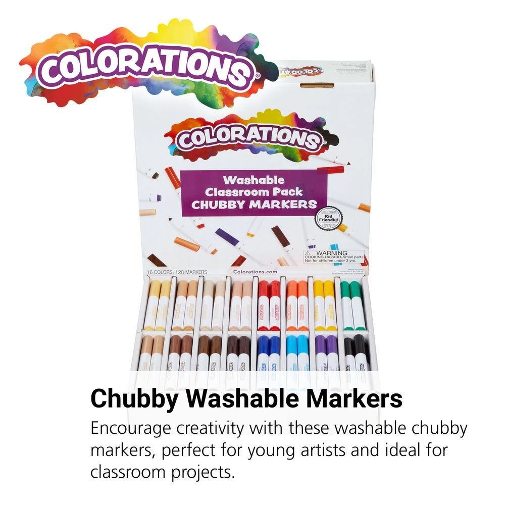 128 classic and skin-toned colored markers. You get 16 different color markers, great for diversity projects and crafts. A great tool for students to show their creative side while improving motor skills. All Colorations® products are certified ASTM-D4236 for non-toxicity.