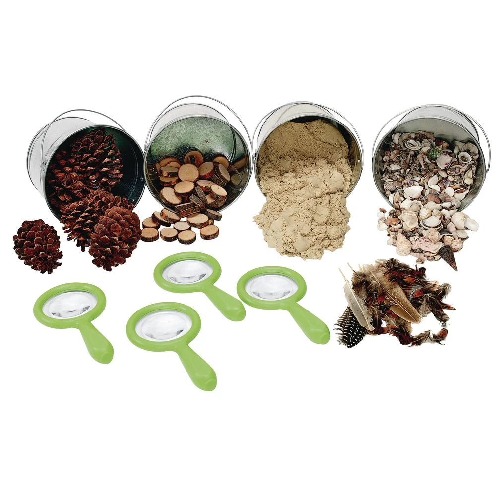 - Bring nature indoors with this giant assortment of natural items and 4 magnifying glasses