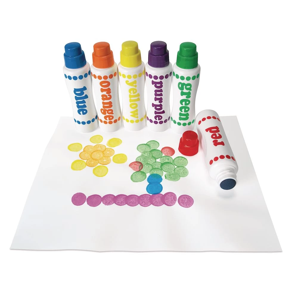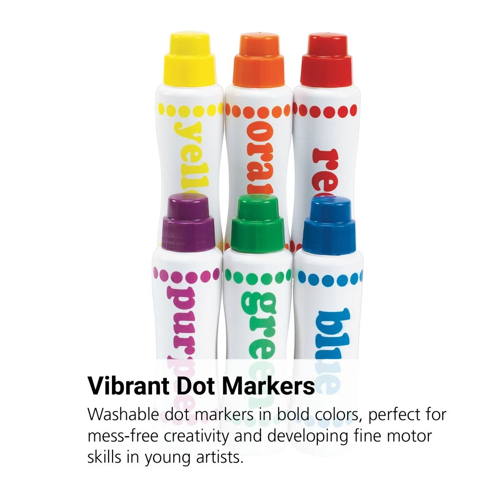 - WHAT YOU GET: Set of 6 Dot Markers. Each marker contains 2-1/2 oz. of ink. Also comes with an idea sheet for crafting inspiration. Dries quickly.