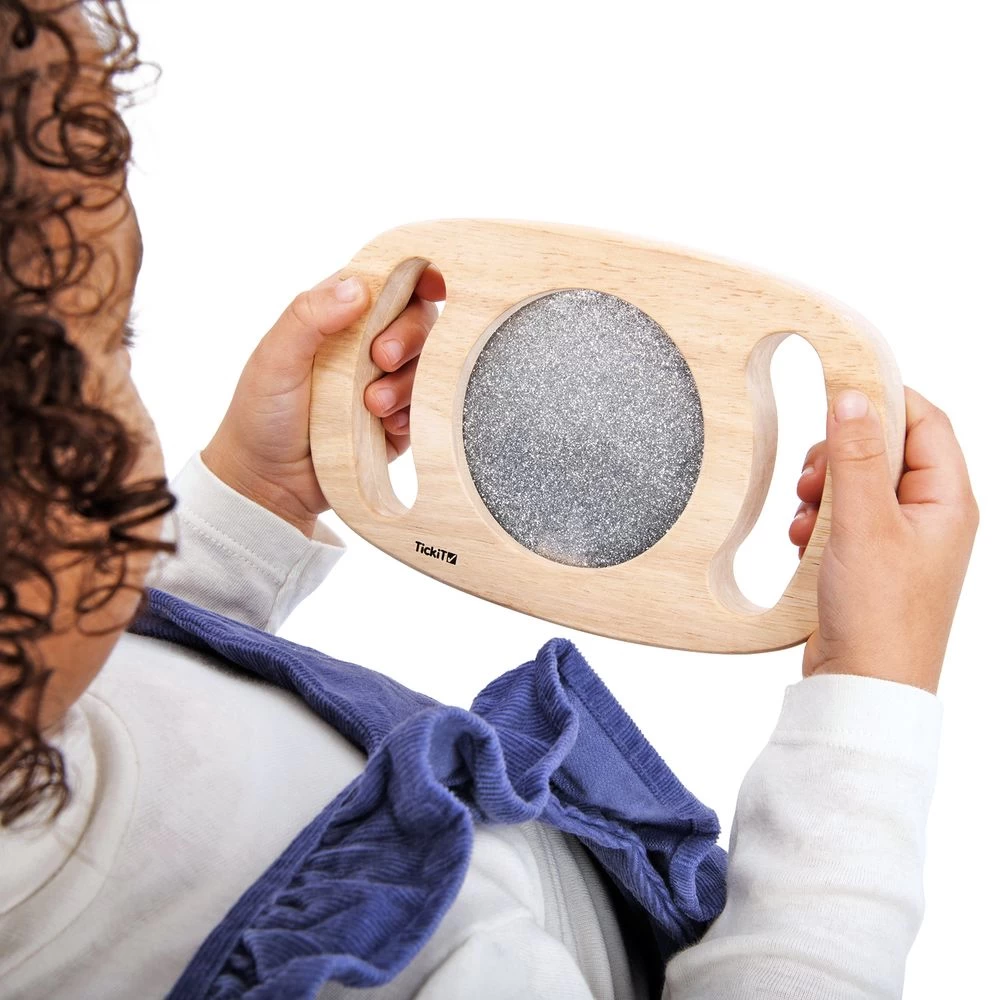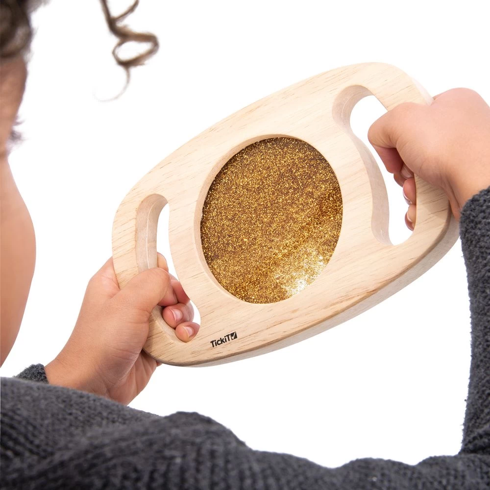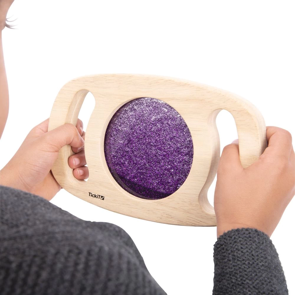 Stimulate the senses with gold, silver, and purple glitter! Children will love the bright colors and smooth surfaces and will have no problem gripping the large handholds.