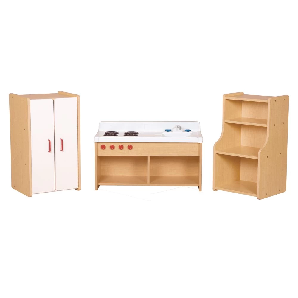 Sink-Stove Combo is 22″ high x 36″ wide x 16″ deep. Top is ABS plastic with safe rounded edges and super-strong corners. Busy children can twist and turn extra-sturdy knobs and faucet as they pretend to cook and wash the dishes.