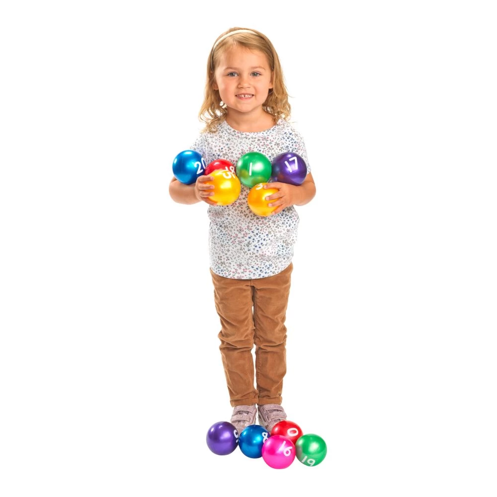The Number Ball Set has twenty-one balls with numbers printed on them from 0 to 20. Add the Number Ball Set into your playtime to foster gross motor play and develop hand-eye coordination. The set also encourages number identification, counting and early math skills. Endless indoor or outdoor fun for small to large play groups.