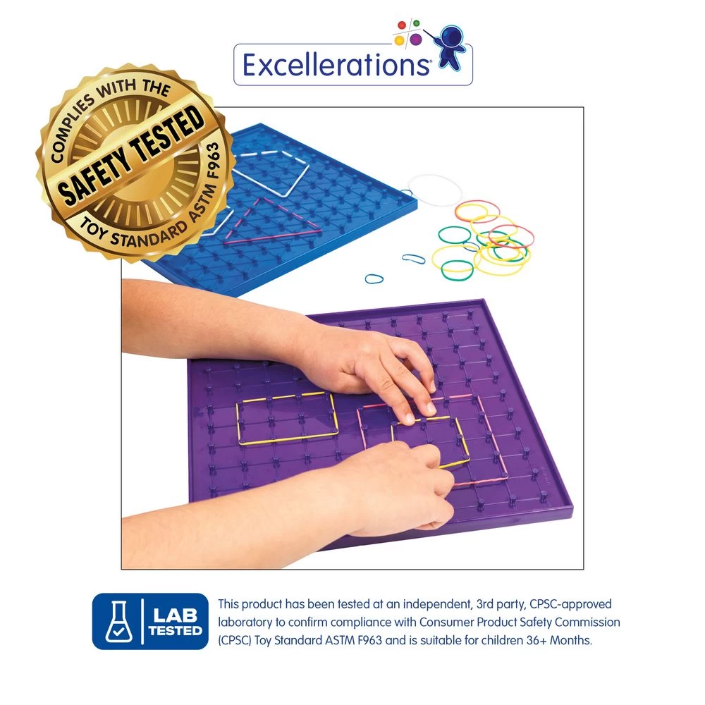 - GAMES: Fun to build triangles, squares and pentagons using rubber bands on peg boards. Play math games by using each board as a quadrant and create new shapes and shapes within shapes using rubber bands