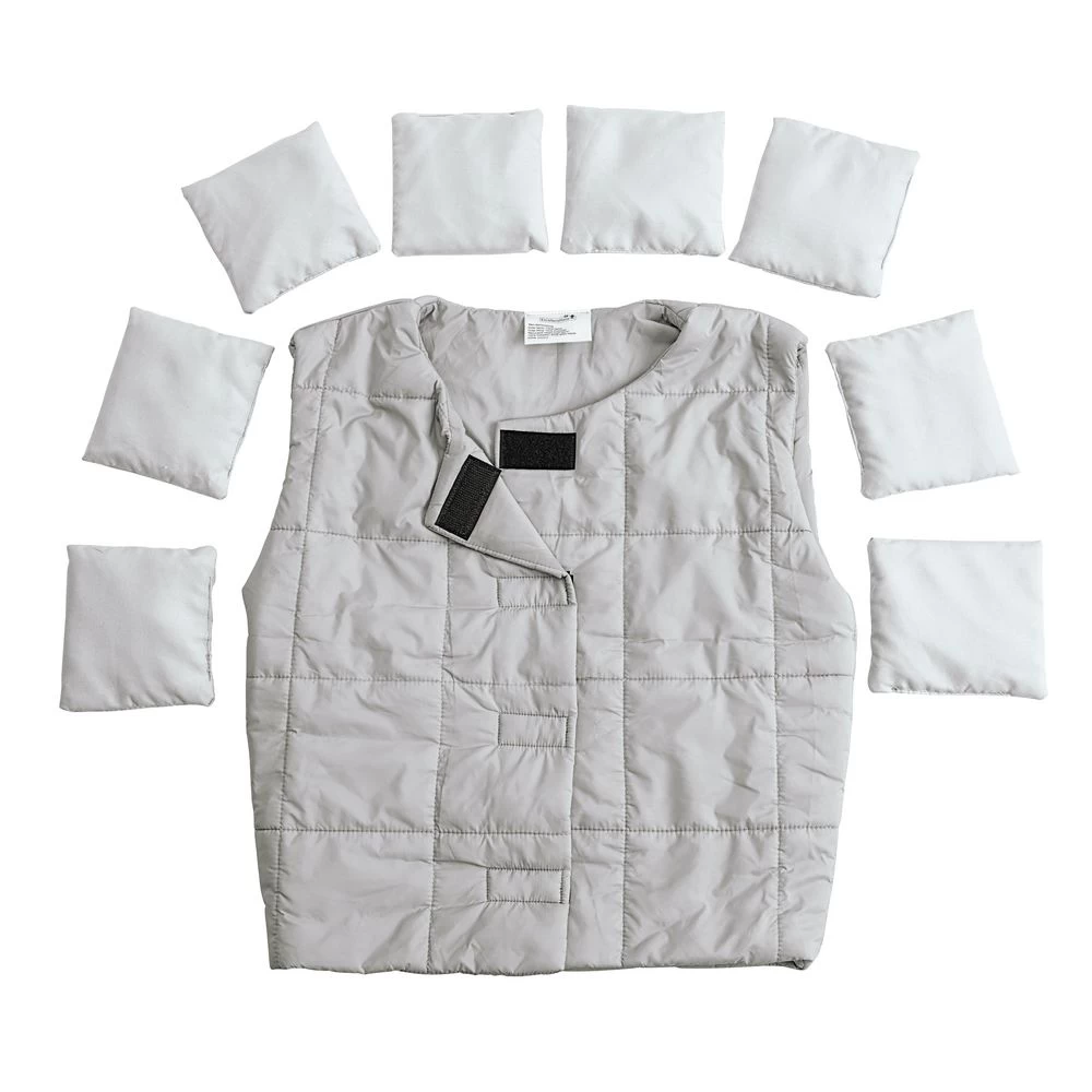 Help your child get ready to learn with 1 size medium vest with 8 removable weights, so you can customize the amount and distribution of weight to fit your child’s needs. The total weight provided is approximately four pounds. The stylish and comfortable fabric in a calming grey color looks like typical clothing and will not bring unwanted attention to the wearer. The calming sensory input provided can aid in focus and concentration at school or at home. The adjustable, soft closures allow for children to independently put on and take off the vest. This vest is machine washable after removing weight bags for easy cleaning and comes with a sturdy zippered bag for easy storage with a carrying handle for taking on-the-go.