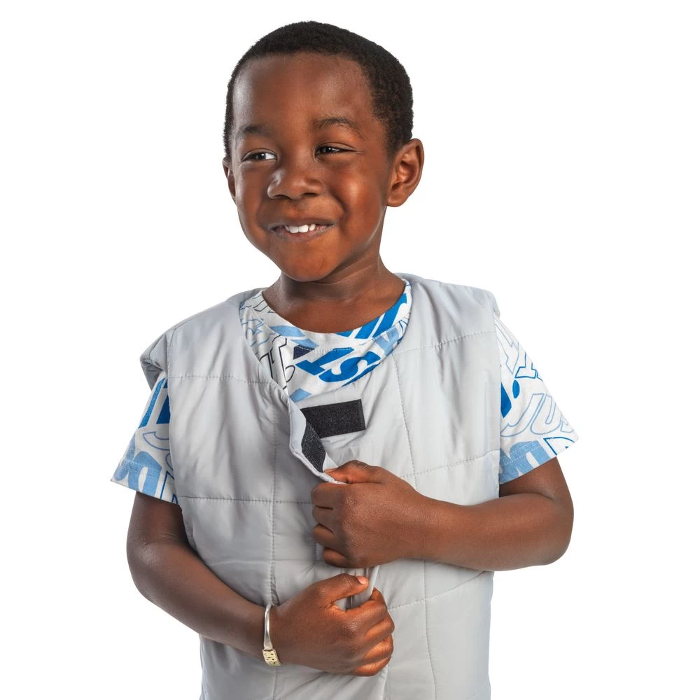 - CALMING SENSORY EXPERIENCE: This stylish vest offers an adjustable, portable sensory experience that may ease anxiety and stress for some children as they get ready to learn. It comes in a calming discrete solid grey tone and offers the look of a typical clothing vest.