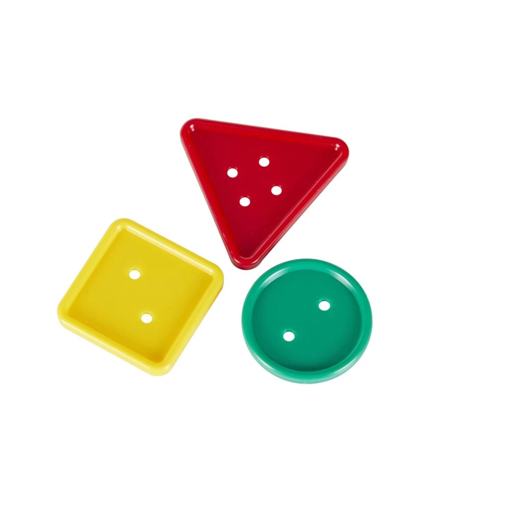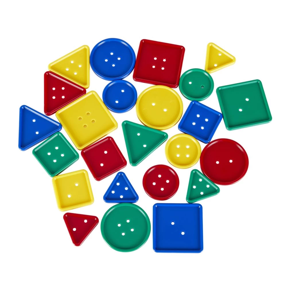 - EDUCATIONAL: Ideal to use for counting, shape recognition, color recognition, identifying attributes, and more. Each button features four holes and can be used to practice threading as well, which is a great way to build up finger strength.