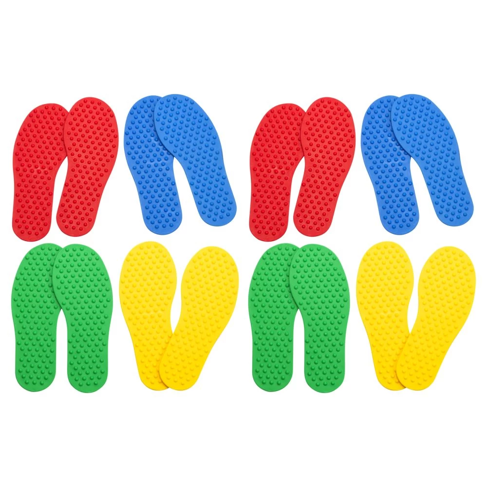 - WHAT YOU GET: 16 textured feet floor markers, in 4 colors. Floor markers are made of flexible plastic material. You get a pair of red, blue, yellow, and green feet each measuring 8.89” x 3.74” (22.5cm x 9.5cm).