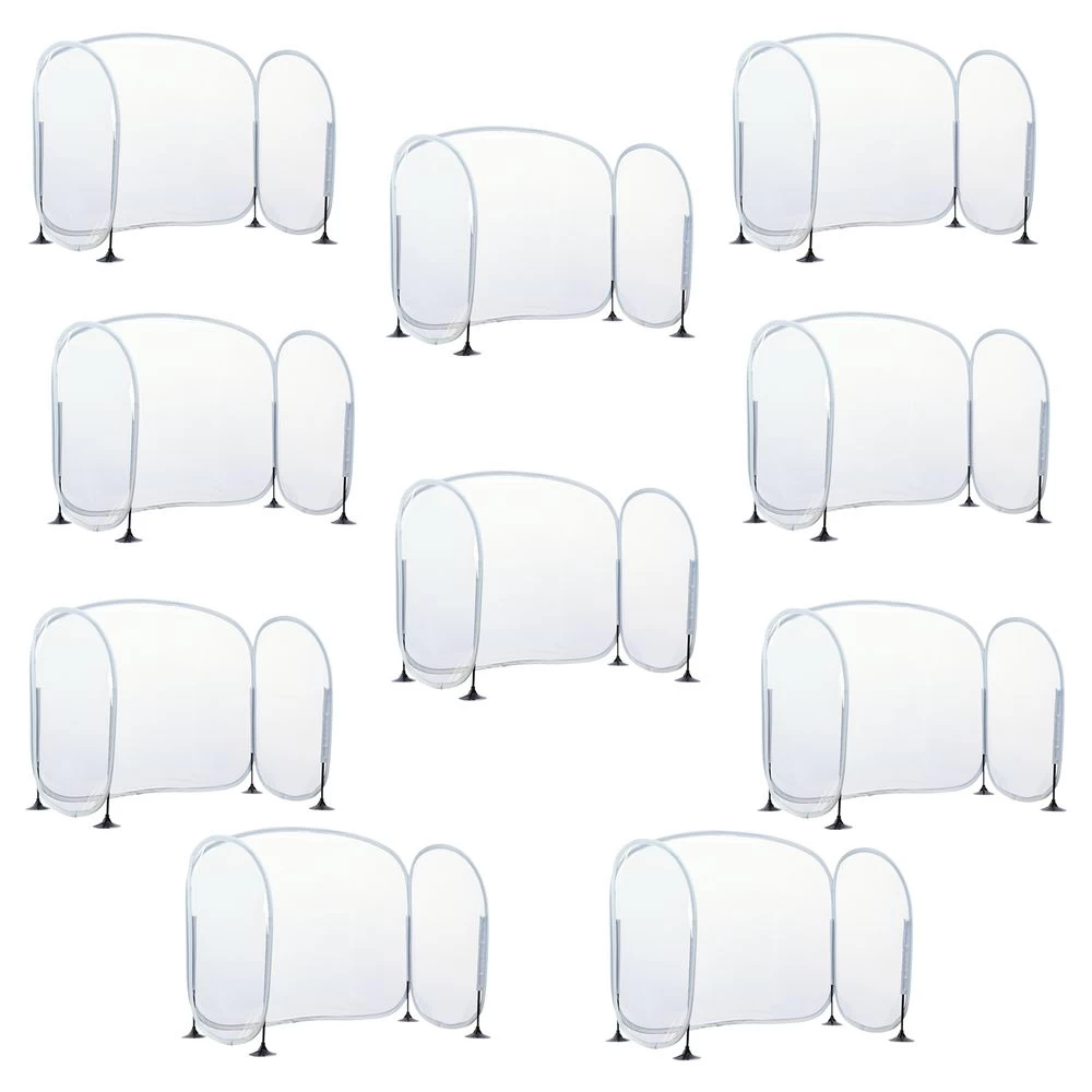- EASY TO WIPE: Easy to clean with mild soap and water. The barrier is made from a clear PVC that can be sanitized and the pop-up steel frame is encased in waterproof tubing.