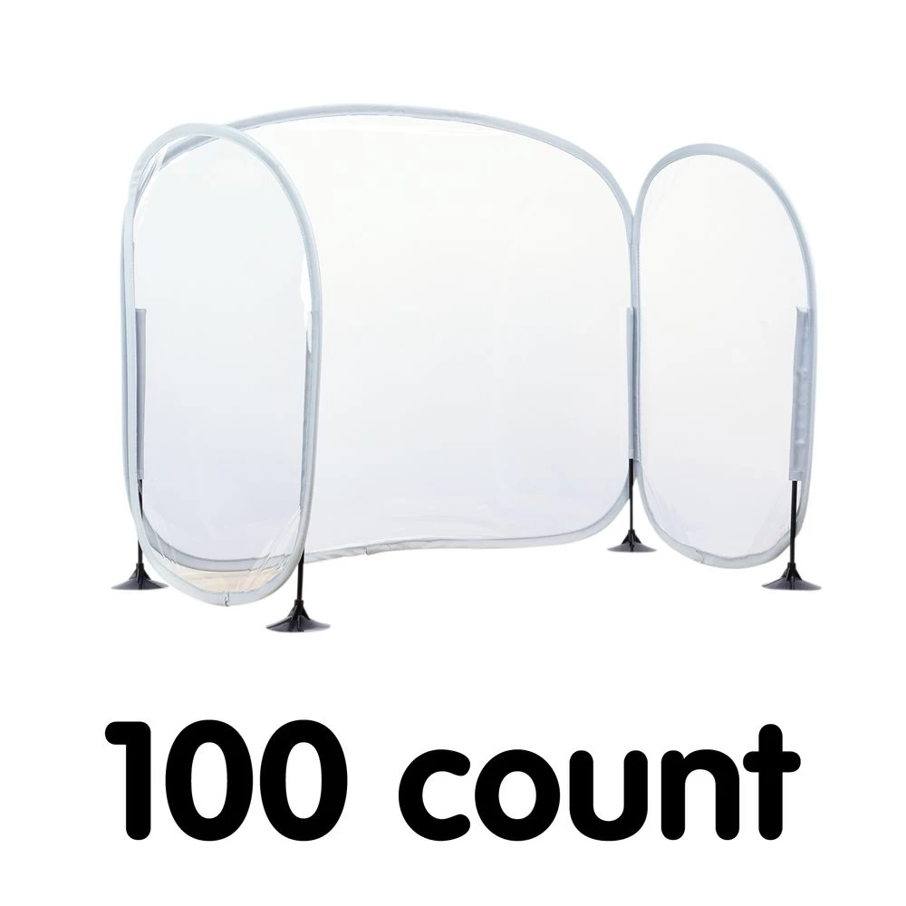 - EASY TO WIPE: Easy to clean with mild soap and water. The barrier is made from a clear PVC that can be sanitized and the pop-up steel frame is encased in waterproof tubing.
