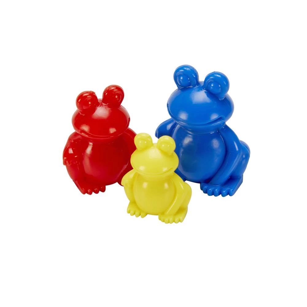 - PACK OF 27: This set of 27 frog counters come in three vibrant colors; red, blue, and yellow. They are also three different sizes ranging from 1/3 inches to 1-1/4 inches. Their plastic material makes them easy to clean and sanitize.
