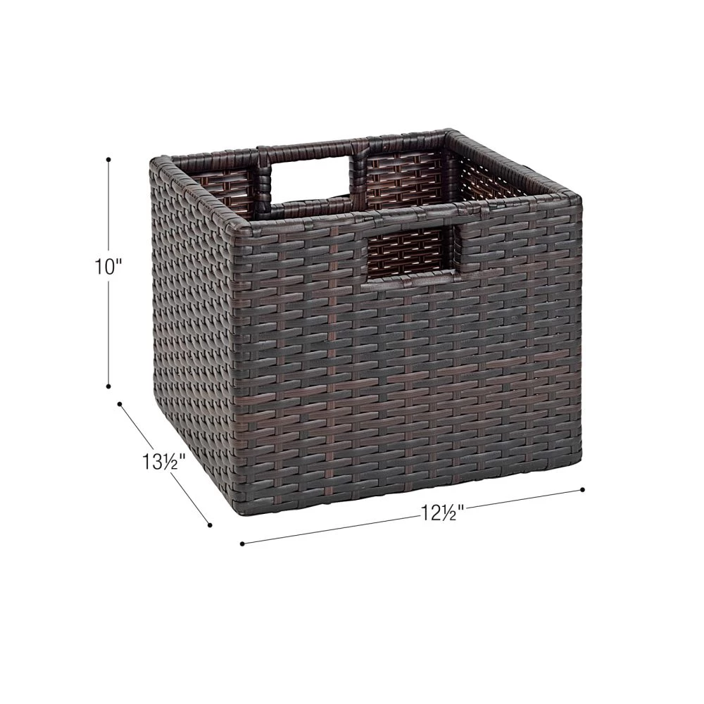 Organize your space with the versatile small sized, indoor/outdoor wicker basket. Keep things close at hand, yet hidden, by stowing books, toys and more inside the durable wicker basket which fits beautifully inside the three different available storage shelving units.