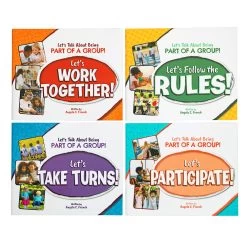 - FOUR BOOK TITLES: The titles included are; Let’s Follow the Rules!, Let’s Participate!, Let’s Take Turns!, and Let’s Work Together! They are sure to be a great addition to your home, school, or center.