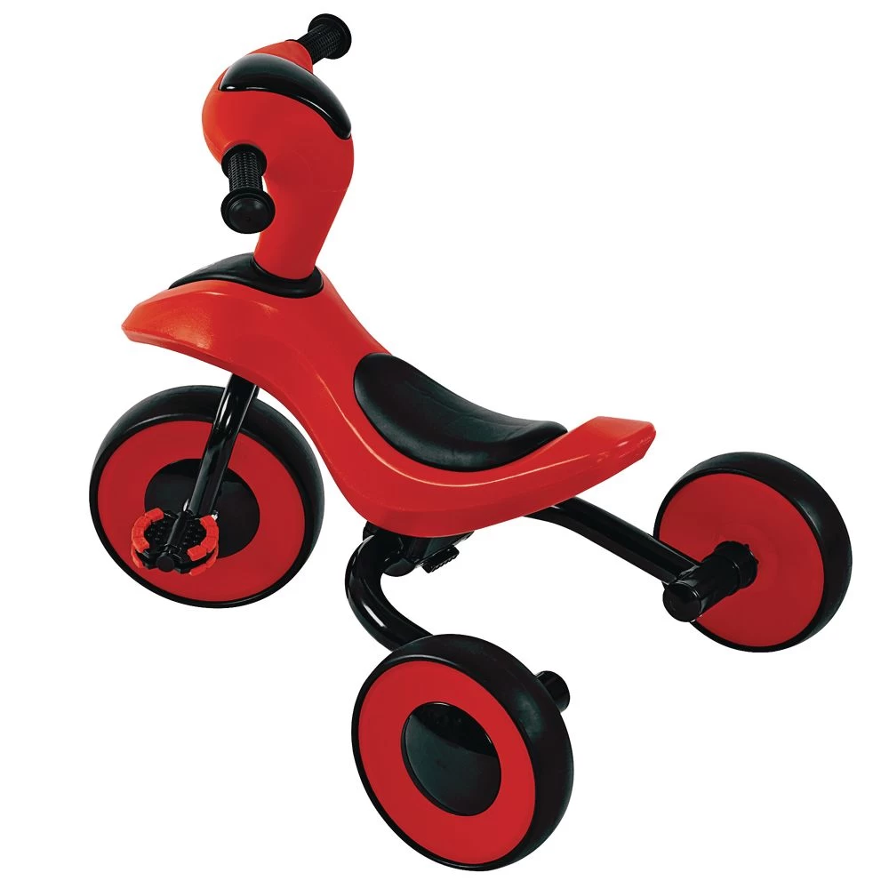 Updated, streamlined design helps little ones develop balance and coordination while having fun! The lightweight trike is designed with a low contoured seat, soft nubby handlebars, broad rear wheel base, and textured “no-slip” pedals. Steering fork has built-in limiter to prevent over-steering. Easy assembly with step-by-step full color photos. Assembled trike measures 26 inches long x 21 inches wide x 21 inches high at handlebars (seat is 12 inches high). Trike weighs just over 10lbs and has a 50lb weight capacity. For children ages 2 years and older.