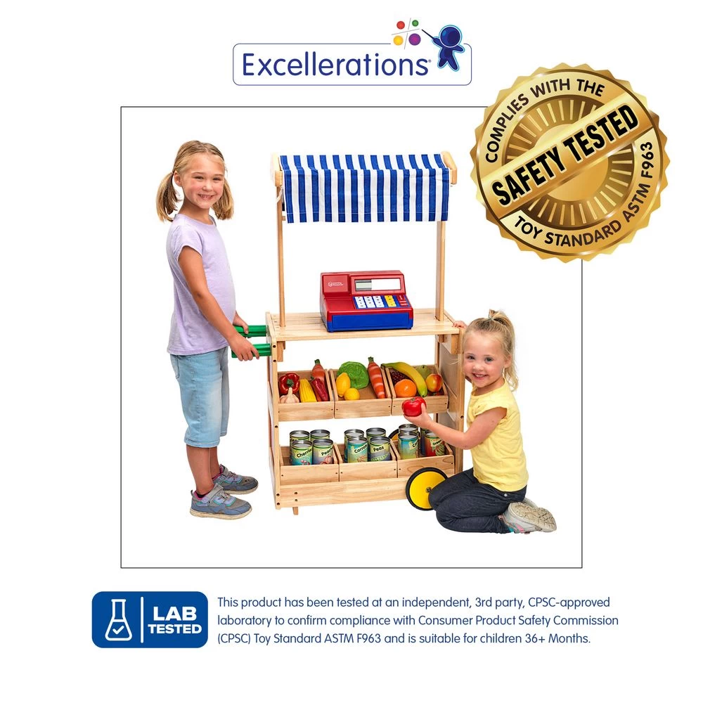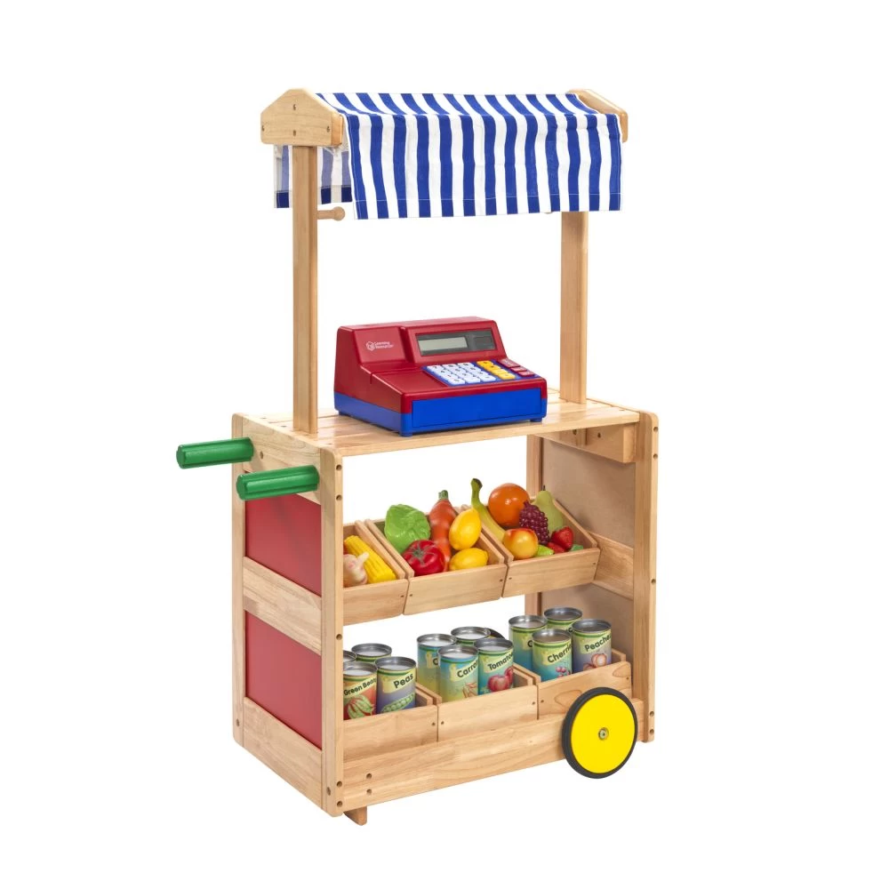 - MARKET STAND AND MORE: The perfect stand for young merchants to display their wares! Pack it with produce – it’s a farm stand, food truck, or bakery counter on wheels. Fill it with books – it’s a bookmobile. Stock it with crayons, markers, and paper – it’s a mobile art studio. Let young entrepreneurs’ imaginations soar!