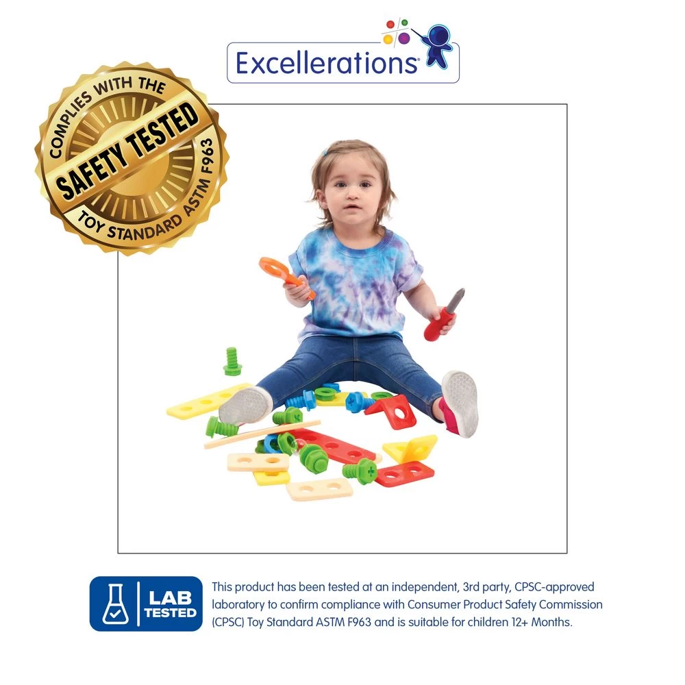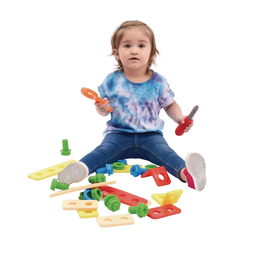 Even the smallest builders need proper tools! Soft play set includes everything needed for handy helpers to start exploring grown-up roles. Ideal for homeschool or home school use. For children ages 12 months and older.