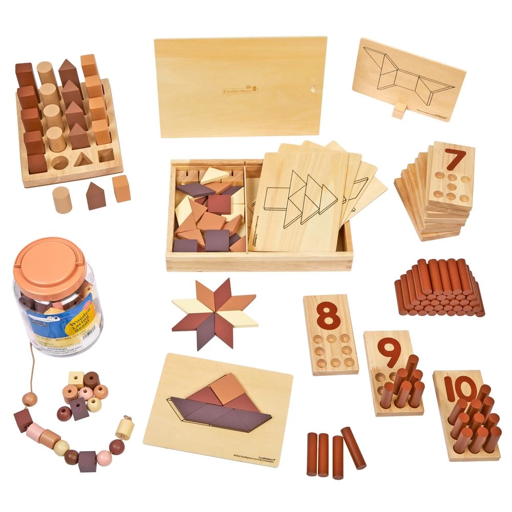 - ENCOURAGES EARLY MATH SKILLS: The natural math kit can be used to teach sequencing, sorting, patterning, counting, problem solving, and geometric shape recognition.
