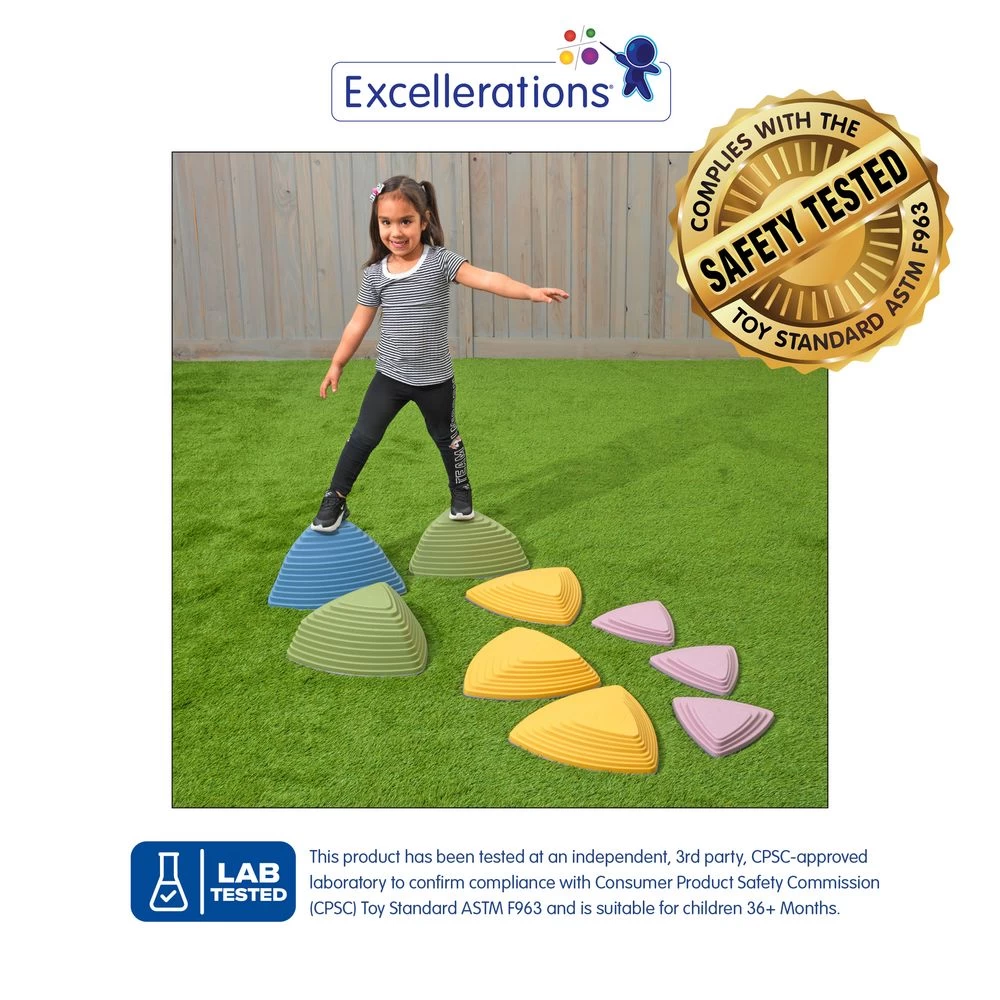 - STEP AND BALANCE FUN: Set of 9 natural-colored steppingstones in four graduated heights are perfect for kids to practice balance, coordination, and gross motor skills.