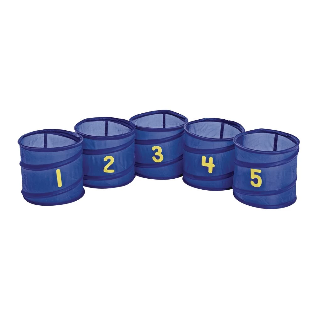 Collapsible fabric baskets invite children to toss and score! A fun way to teach your children educational and mathematical lessons while working on their tossing and throwing skills. Works great for indoor or outdoor set up. Beanbags sold separately.