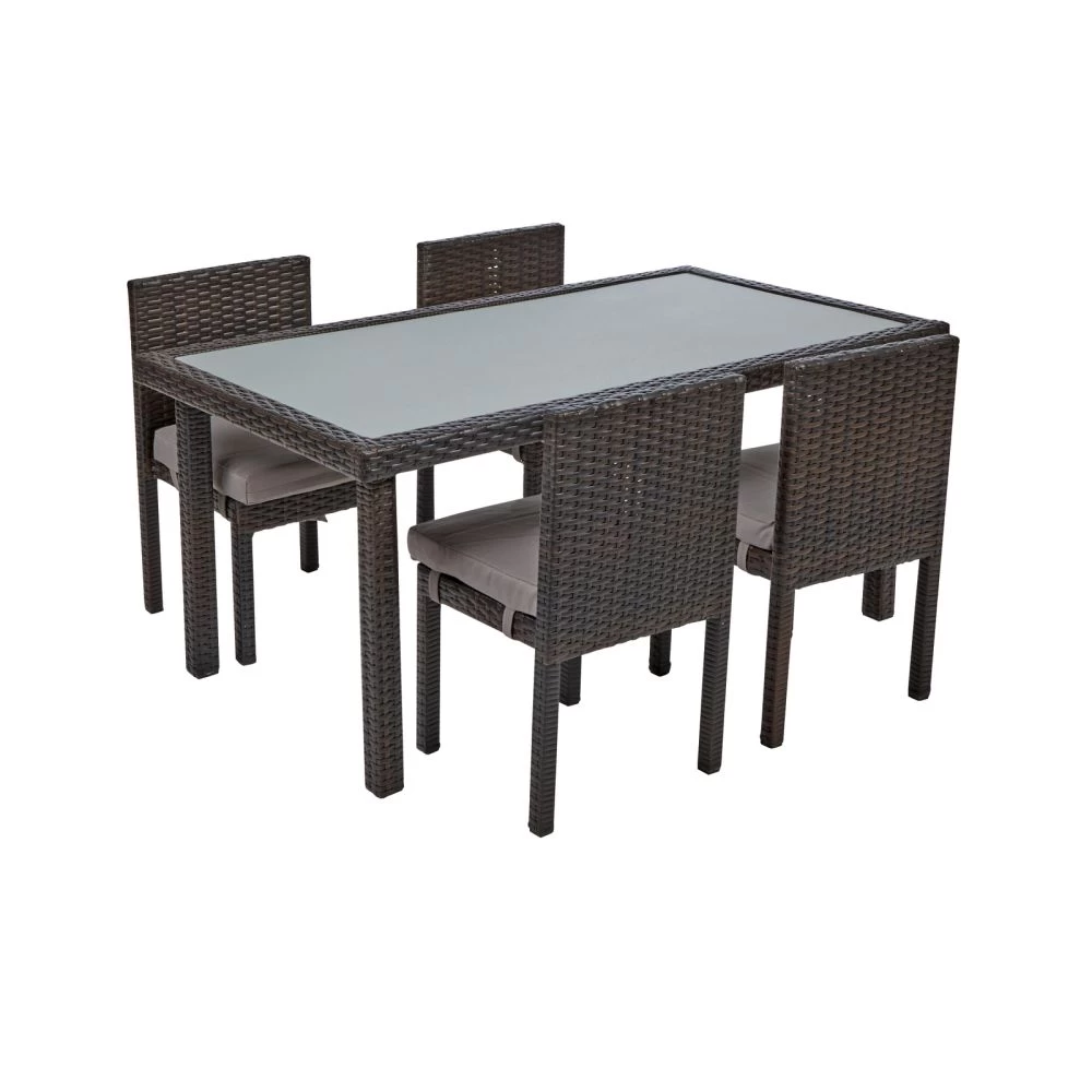 - OUTDOOR DINING IN STYLE: Table and chairs have classic yet contemporary look that’s attractive and practical – perfect for outdoor dining on the deck or patio or for nature-inspired classrooms. Lightweight aluminum frames are wrapped with wicker-look plastic strips in variegated shades of browns and grays that look and feel like real wicker. A high density polyethylene (HDPE) tabletop is framed by resin wicker edges creating a timeless look.