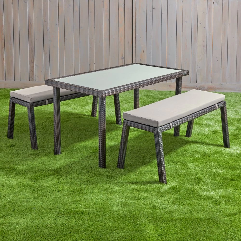 - CLASSIC AND PRACTICAL: A high density polyethylene (HDPE) tabletop is framed by resin wicker edges creating a timeless look. Tabletop makes for a great space for creating spectacular works of art. Perfect for drawing or writing lessons too. Big bonus, the smooth tabletop surface is super easy to clean. Bench has a contemporary look with a thick, spongy cushion makes this bench the perfect spot for kids to relax, read, or visit with friends. Water-resistant polyester cover is removable for easy cleaning.