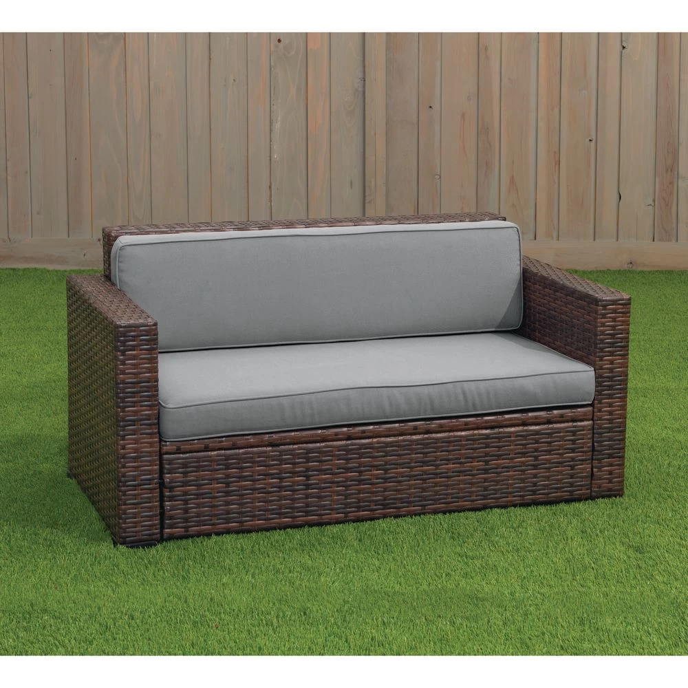 - CONTEMPORARY DESIGN: Clean lines are swathed with wicker-look strands in shades of tan, brown, beige, and gray. Looks and feels like real wicker, complements any decor. Sofa measures 39 inches x 20 inches x 21 inches with 8.5-inch seat height – perfect for preschoolers.