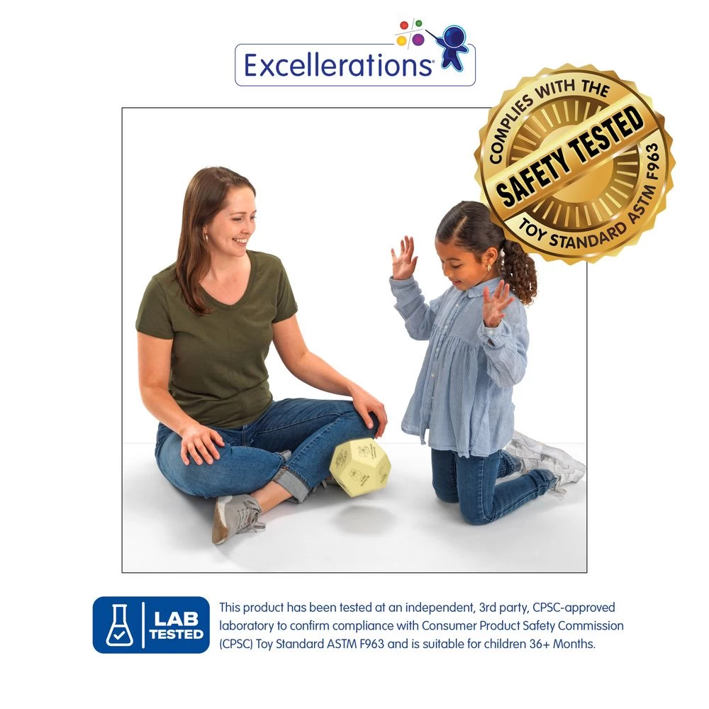 Help children build lifelong social-emotional strategies for developing self-confidence! Everyone could use more self-confidence, self-awareness, and recognition of their strengths! Now you can empower children with this fun and engaging 12-sided (dodecahedron) activity die that offers up kid-friendly, age-appropriate strategies for growing self-confidence and self-awareness through recognizing interests and strengths. This easy to grasp 6.75” diameter die is made of dense EVA foam that’s super safe and is illustrated with simple drawings and easy sharing prompts. This sensory, hands-on, SEL teaching tool provides practice that builds lifelong interpersonal skills, independence, and confidence. Some of the ideas on this die include sharing “Something I’m good at”, “My favorite joke”, “My favorite place to visit”, and “I am proud of myself for” …Use this die to help a shy child share in a group setting when they need a confidence boost or utilize it in a lesson to model the diversity of strengths different children have. This tool is a great addition for any classroom or home, especially those with young children who may need a little confidence boost or conversation starter!
