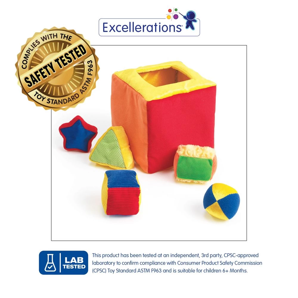 - QUALITY: Soft fabric in a variety of textures is machine washable in cold water. Box and sensory bits have sewn details and are durabile for classroom use.
