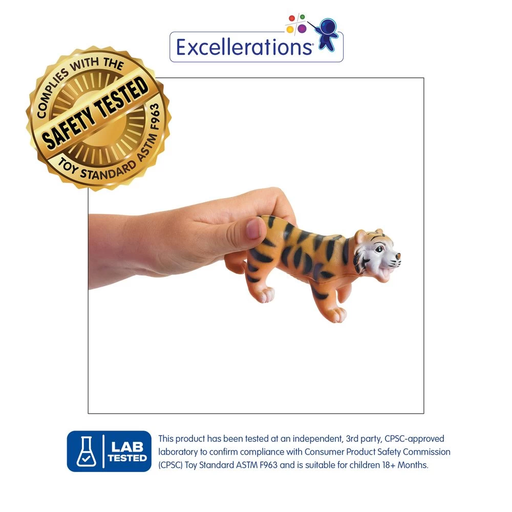 - Includes: hippo, lion, tiger, zebra, rhino and elephant