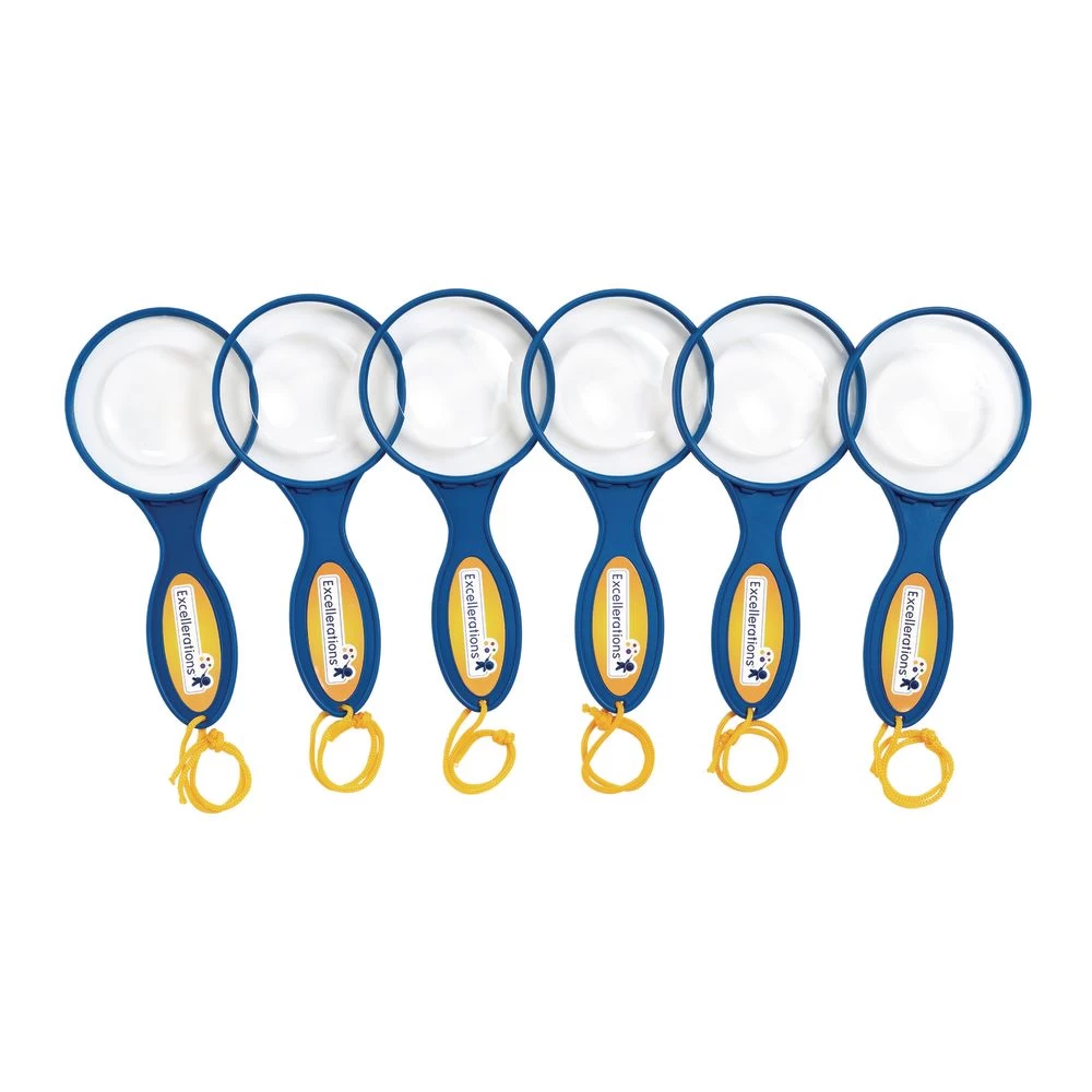 - SET INCLUDES: 6 blue magnifiers with yellow handles to keep children from loosing or dropping magnifiers.