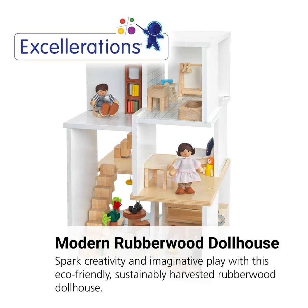 - IMAGINATIVE PLAY: This modern dollhouse encourages hours of pretend play. When young children engage in early role play, it also helps develop their imagination, story telling, creativity, verbal, and communication skills.