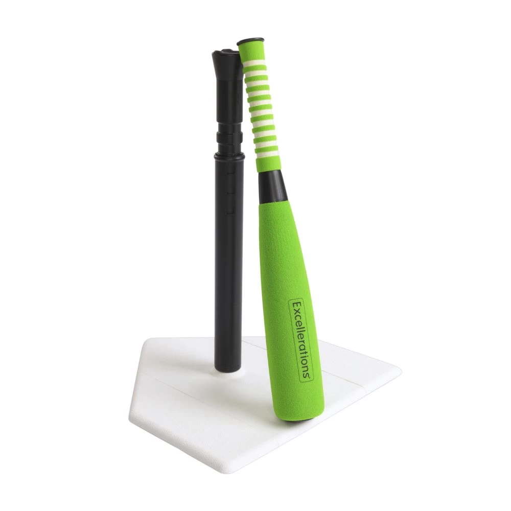 - WHAT YOU GET: 1 plastic home plate, 1 adjustable tee, 1 foam bat, 3 foam baseballs, and assembly instructions. The tee adjusts from 17” to 28” high, while the bat measures 21”, and each baseball measures 2.5” in diameter.