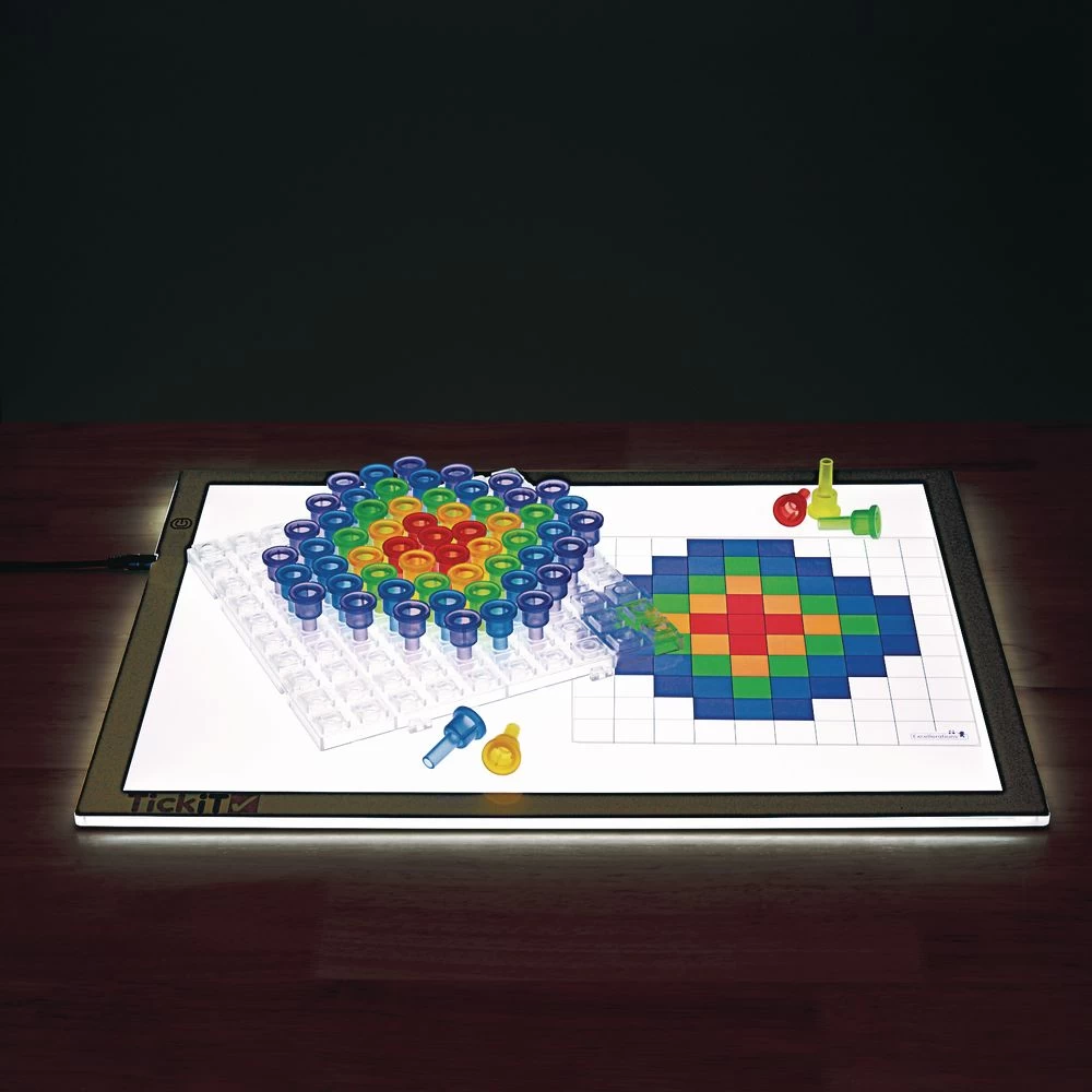 - LIGHT TABLE EXCITEMENT: Kids will love placing colorful translucent pegs into the clear bases and watching their creation glow with the excitement of light. Perfect for creating patterns and imaginative designs on or off a light table.