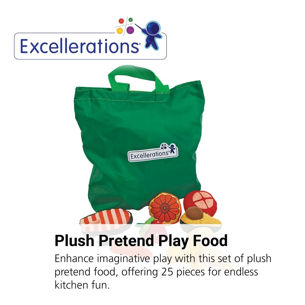- DESIGN: Fun and yummy plush play food set includes fruits, vegetables, poultry and assorted other healthy foods.Designed to give the youngest learners exposure to healthy foods. Foods are machine washable.