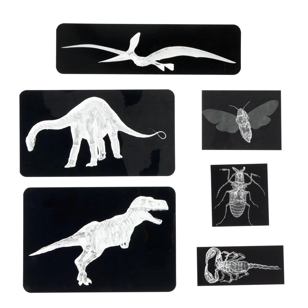 - INCLUDES: 12 picture cards of Dinosaurs, 7-1/2 x 9 inches, 12 x-rays up to 7-7/10 x 10 inches and guide, and 36-piece set of Bugs includes card sets featuring 36 4″ x 6″ full photographic images of each x-ray.