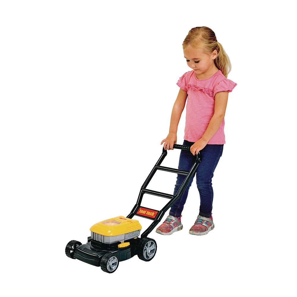 Little ones will love helping in the yard with this interactive set! Includes leaf blower that really blows air, a lawn mower with pullcord and grass-pieces that collect and move around inside and safety attire.