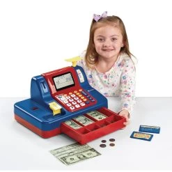 Bring learning money and basic math skills to life with this talking, interactive cash register! Children will have fun practicing coin identification, addition, subtraction and place value as they play 4 featured games that increase in difficulty as players advance their math skill levels.