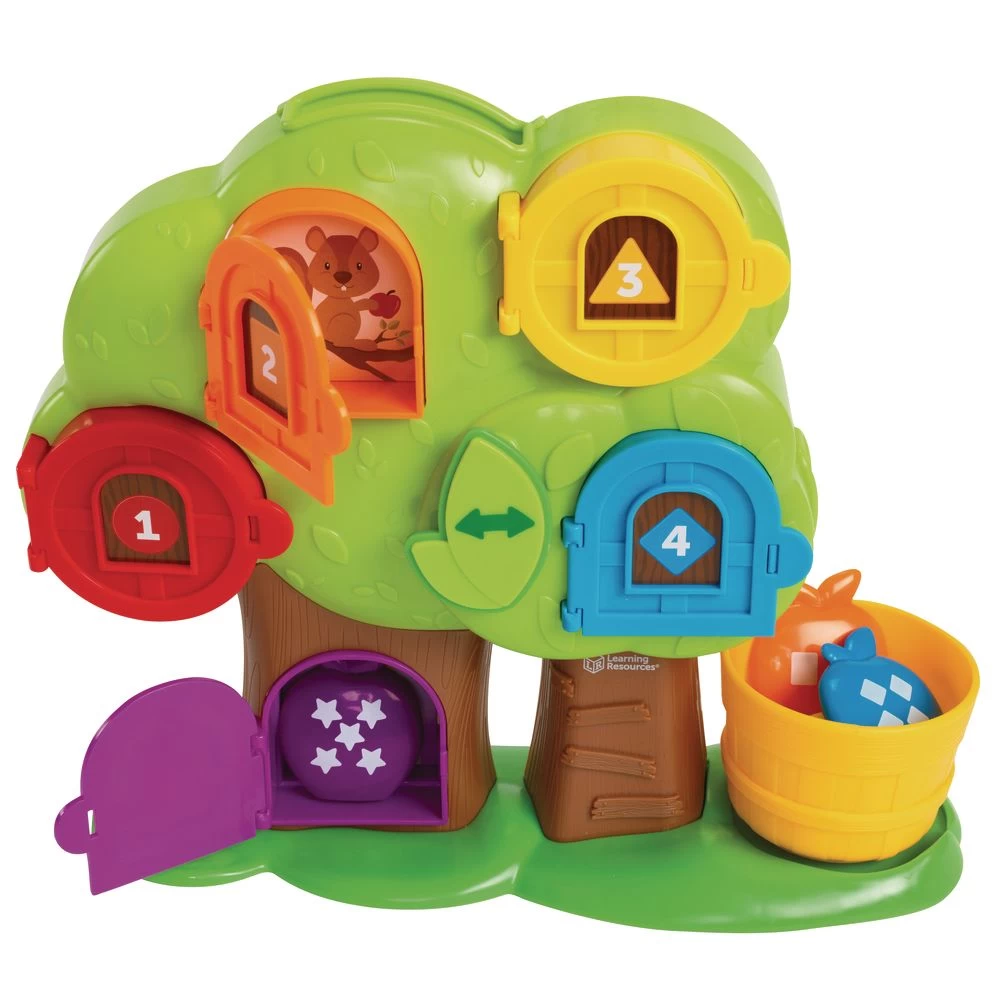 - Built-in chute sends apples tumbling through the tree and out one of two hidden holes for fun interactive play