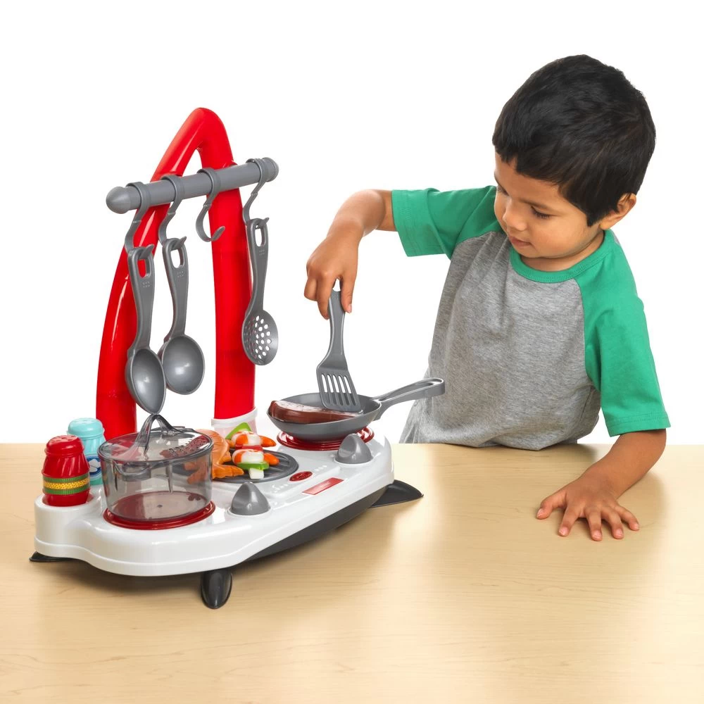 - REALISTIC DETAILS: Stove top makes realistic cooking and grilling sounds when the pot and pan are on the burners.