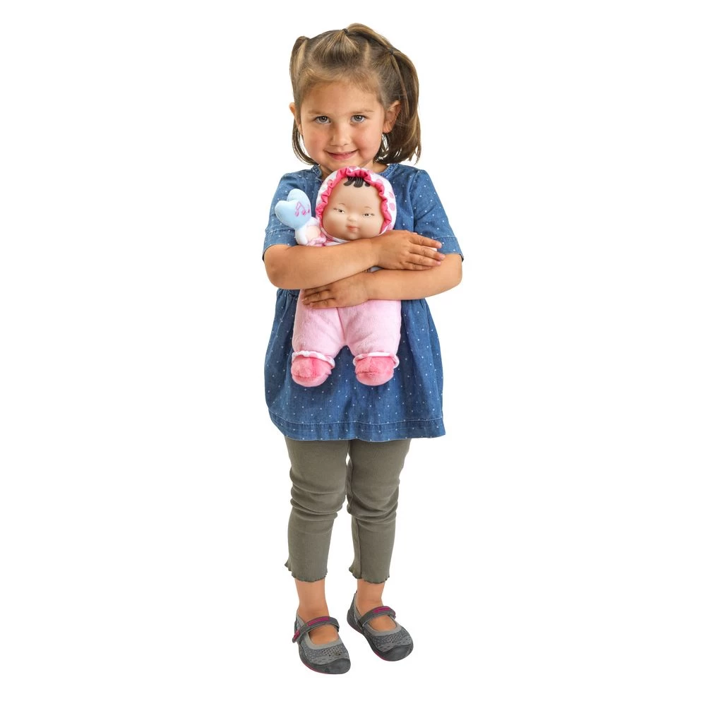 At 12 inches long the soft first baby doll is just right for loving and hugging. Each doll features a soft vinyl face that shows a delightful expression. Doll includes a built-in rattle in one hand, and crinkly paper in the other and in the feet for your child to play and learn with. Active play is critical for kids’ physical development. It helps children hone their coordination and fine-motor skills (smaller movements like picking objects up). Styles may vary. Hand wash separately. For children ages birth and up.