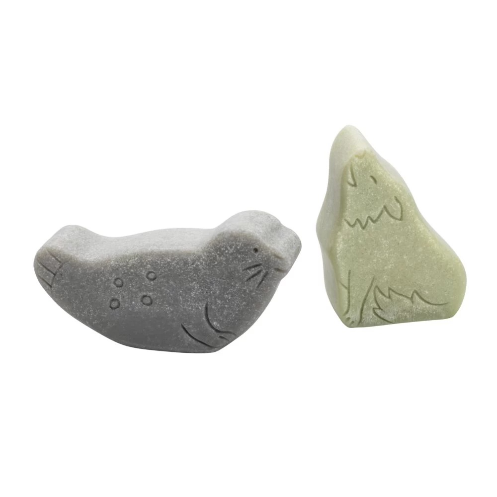 From bear to hare we have your polar expeditions and storytelling covered! The appealing animal figures in this set are perfect for icy, imaginative small world play. Created using a durable stone mix, these tactile animals are tough enough to be used outdoors and in water, ice, soil or snow. The etched details and natural shades give lots to talk about and explore. The set includes: arctic fox, arctic hare, arctic wolf, musk ox, penguin, polar bear, seal and walrus. Max length 3″.